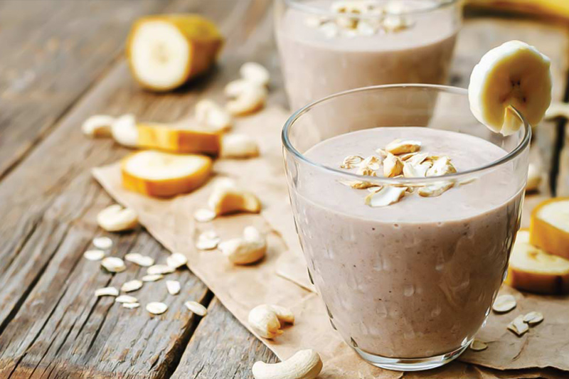- میلکشیکهای خانگی تهیهشده از شیر و میوههای نرم مثل موز برای افزایش کالری دریافتی.